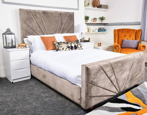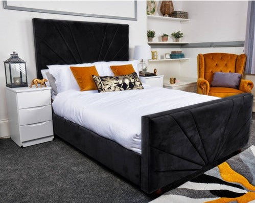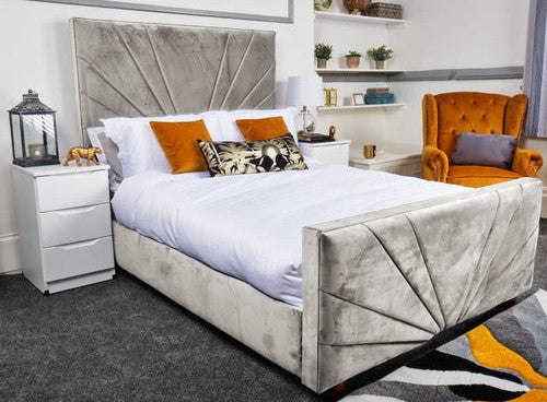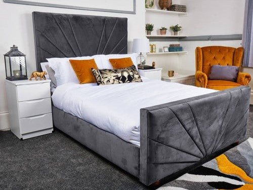 The Palermo bed has a high headboard and footboard with exquisite abstract line decoration, making it a classy focal point in any bedroom.