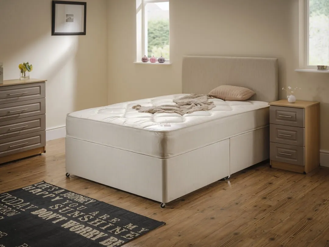 Designed to suit all ages the Reo mattress is a very popular bed amongst landlords. It is deep quilted with a 13.5G spring unit and a combination of fine fillings and bonded fibres covered in a damask fabric.