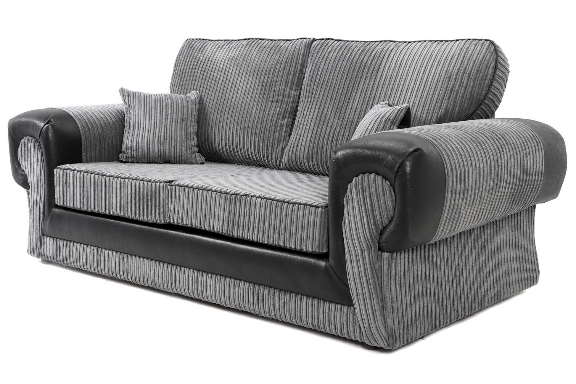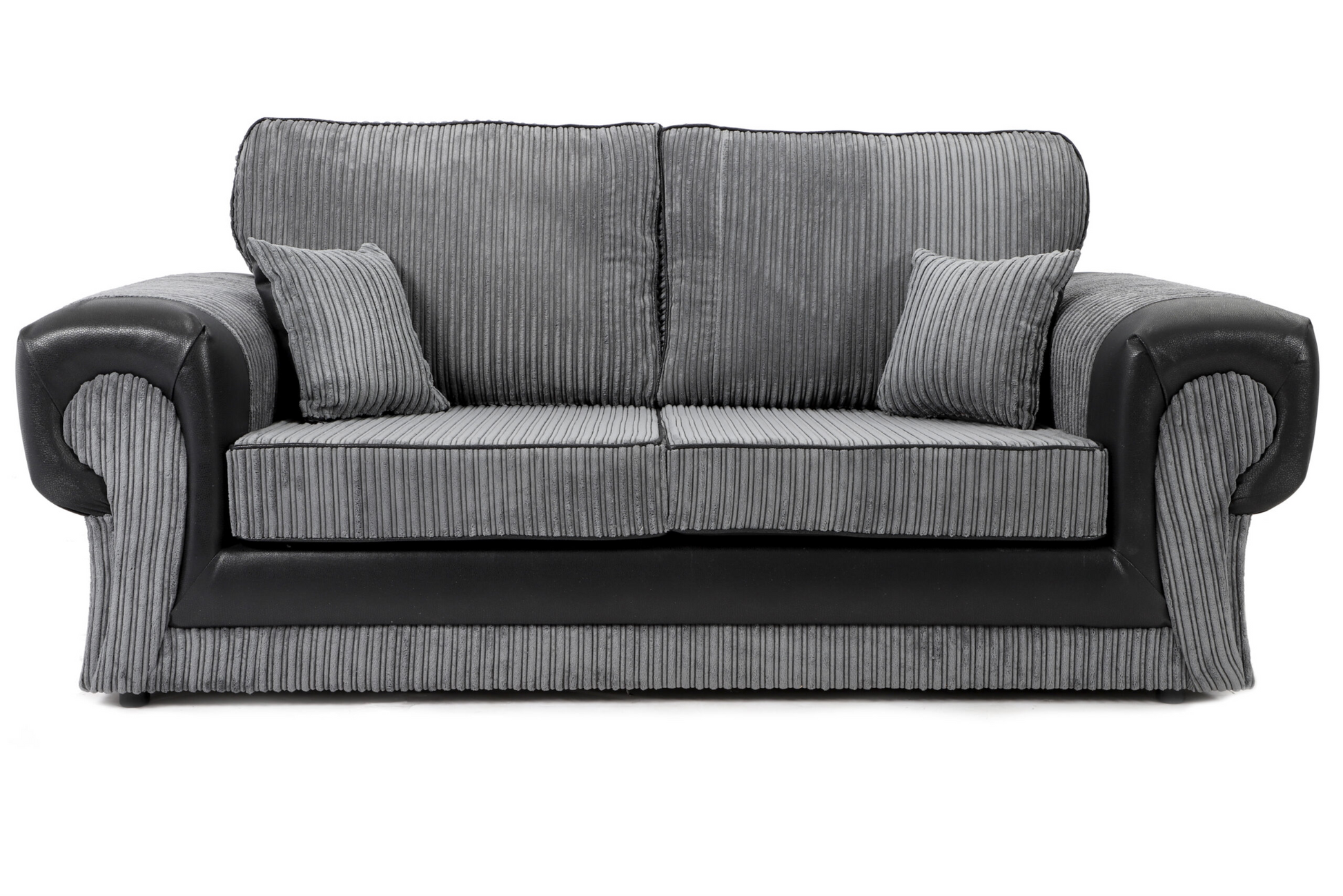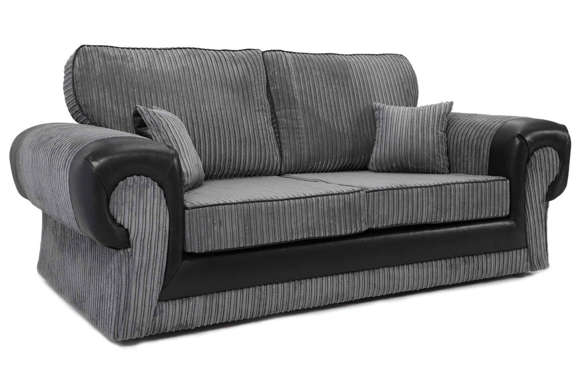 Stunning and incredibly comfortable, the Tangent range is made with a soft foam filled seat cushions. Available in three colours, black shimmer, silver shimmer and black/grey cord, the incredibly soft materials on this sofa provide excellent comfort.  Complimented with the fibre filled back cushions to sink in to, makes this range super comfortable to relax on. The black faux leather when paired with the grey jumbo cord in this sofa collection makes the sofa really stand out creating an eye-catching look that perfectly fits into any interior design. This fantastic sofa range is certain to be a welcomed and stunning addition to your home.