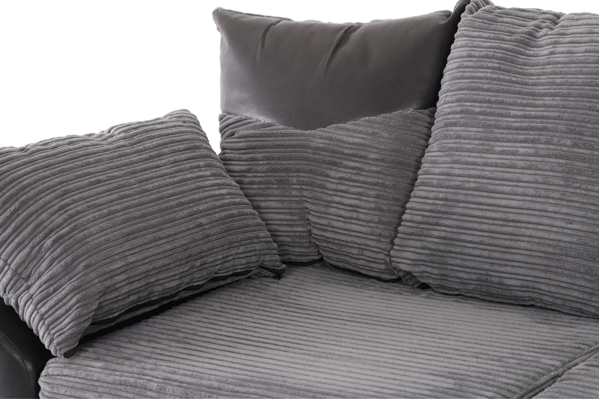 This stunning deep-pile corded fabric sofa, with contrasting leather effect arms and highlights, gives this sofa collection an excellent blend of traditional and modern design that is certain to look good in any home. Made from the finest upholstered quality corded fabric, this sofa is incredibly soft and luxurious. Deep foam filled seat cushions provide extra comfort and integrity. While the robust hardwood frame is sturdy and durable, perfect for a any home.